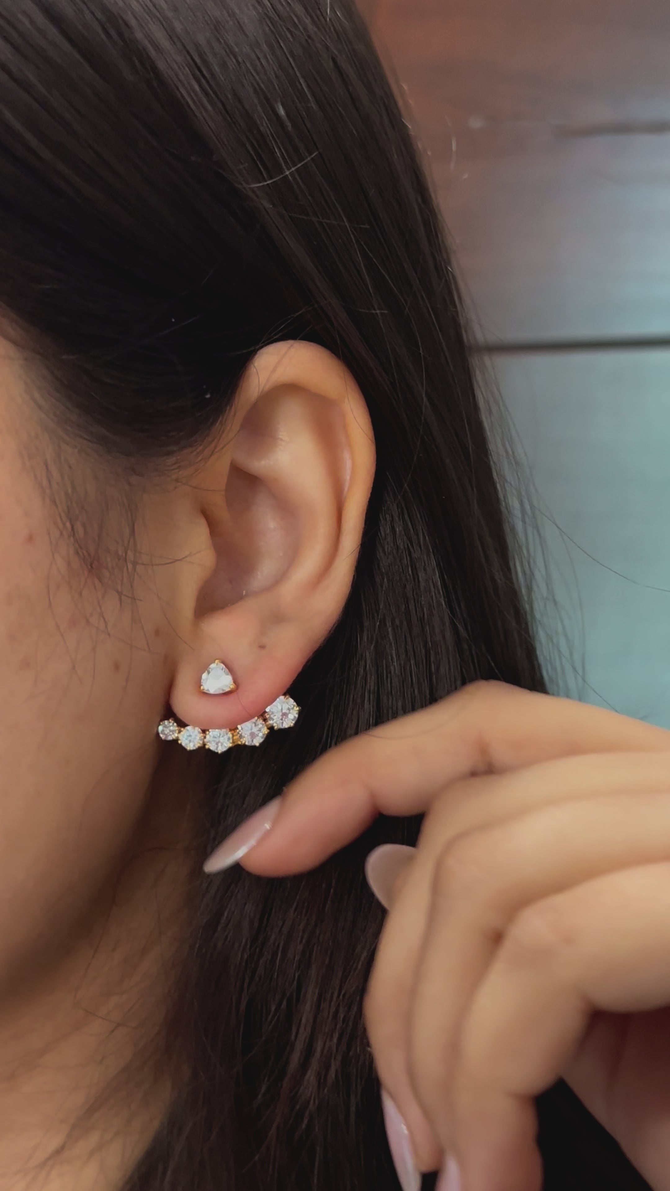 Transform your basic earrings into a luxurious statement piece with our Diamond Ear Jacket. Made with 925 sterling silver and Gold Vermeil plating, adorned with sparkling Cubic Zircon stones. Elevate your style and add a touch of glamour to any outfit.