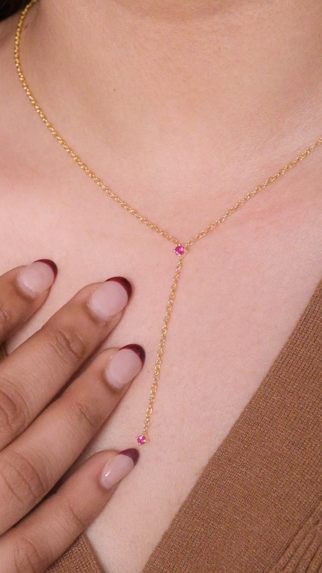 Ruby Drop Lariat Necklace